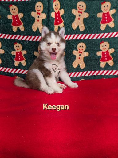 Keegan a red and white male with clear health. He will be around 20-30 lbs. He will come with a full veterinarian physical, up to date on vaccinat...