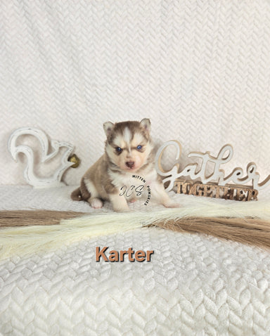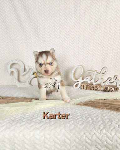 Karter is a red and white male with clear health. He will be around 20-30 lbs. He will come with a full veterinarian physical, up to date on vacci...