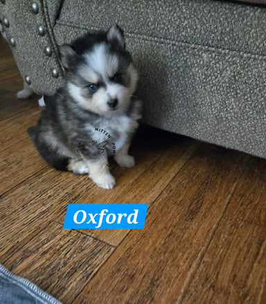 Oxford is a black and white male with clear health. He will be around 15-20lbs. He will come with a full veterinarian physical, up to date on vacci...
